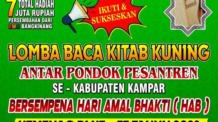 Sementara itu Ketua Panitia Gustika Rahman S. PdI mengatakan, lomba baca kitab kuning ini kita laksanakan juga dalam rangka menyemarakkan Hari Amal Bhakti (HAB) Kementerian Agama Republik Indonesia (Kemenag RI) ke-77 tahun 2023. Kegiatan ini akan diikuti oleh seluruh Pondok Pesantren yang ada di Kab. Kampar.