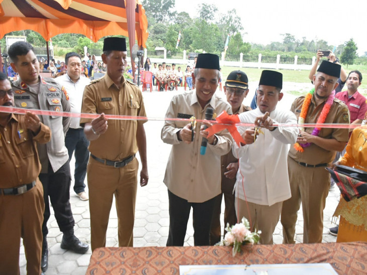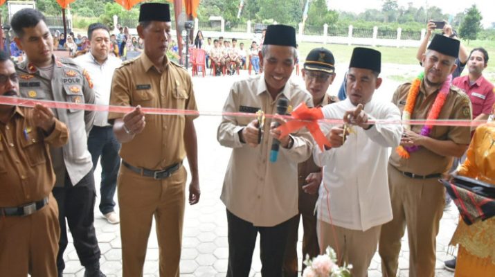 Setelahnya Pj Bupati Kampar resmikan SMPN 3 Perhentian Raja ditandai dengan pengguntingan pita dan penandatanganan prasasti SMPN 3 Perhentian Raja. (Infotorial)