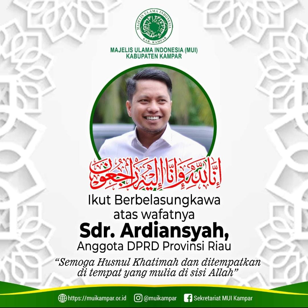 Padahal selama ini, Ardiansyah merupakan Anggota DPRD Riau Dapil Kampar dari Fraksi Partai Keadilan Sejahtera (PKS) selalu tampak sehat dan bugar dalam melaksanakan tugasnya sebagai Wakil Rakyat.