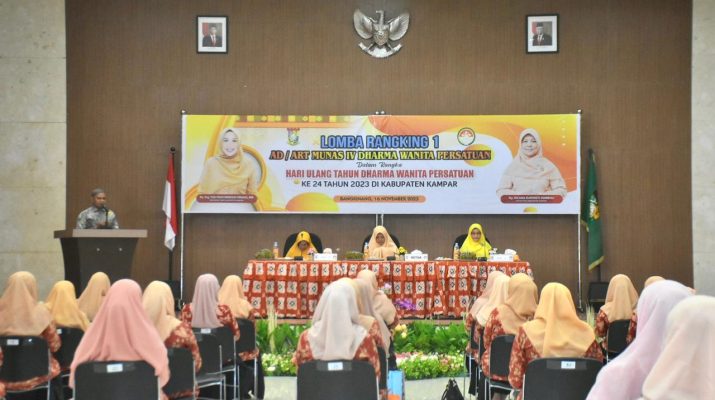 Bangkinang Kota, MataAura.com – Ketua Dharma Wanita Persatuan (DWP) Kabupaten Kampar Ny.Ricana Djayanti Hambali membuka lomba ranking 1 AD/ART munas IV Dharma Wanita Persatuan Kabupaten Kampar yang dalam rangka hari ulang tahun Dharma Wanita Persatuan yang ke – 24 tahun 2023, yang dimana acara lomba tersebut di selenggarakan di Aula Kantor Bupati Kampar pada, Kamis 16/11/2023. yang diikuti seluruh pengurus dan anggota DWP Kabupaten Kampar.