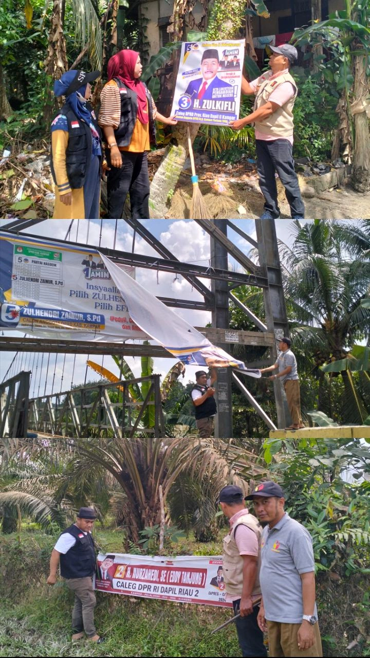 “Alat peraga kampanye yang ditertibkan sekarang ini ialah milik para calon legislatif DPR RI, DPRD Provinsi, DPRD Kabupaten dan calon anggota DPD RI yang dipasang di tempat terlarang, seperti di rumah ibadah (mesjid), gedung pemerintahan dan tempat pendidikan (sekolah),” sebutnya.