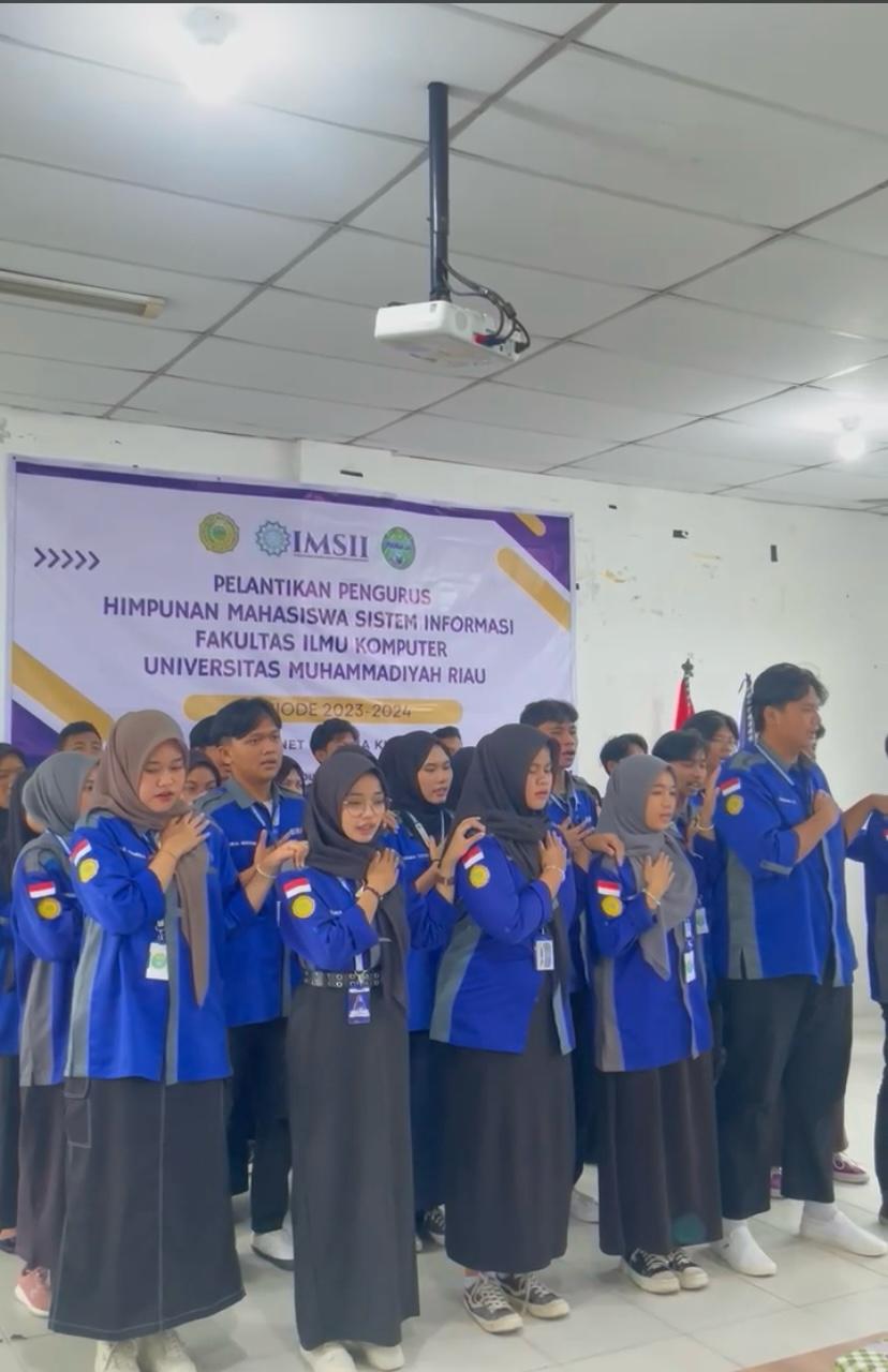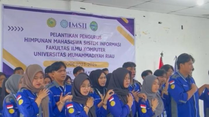 Pekanbaru, MataAura.com – Pengurus Himpunan Mahasiswa Sistem Informasi UMRI Periode 2024/2025 resmi dilantik. Pelantikan yang dilaksanakan pada (07/02/24) di ruang kelas gedung RD Universitas Muhammadiyah Riau tersebut berlangsung khidmat.