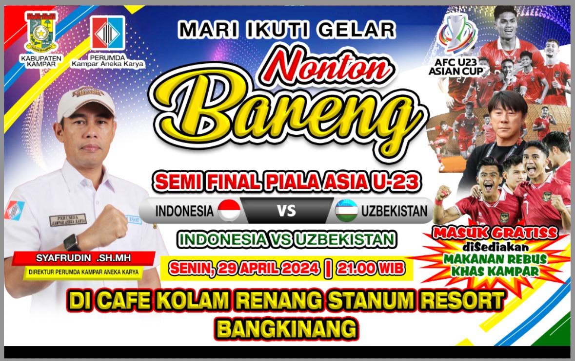Perumda Kampar Aneka Karya akan Menggelar Nobar Pertandingan Semi Final Indonesia VS Uzbekistan