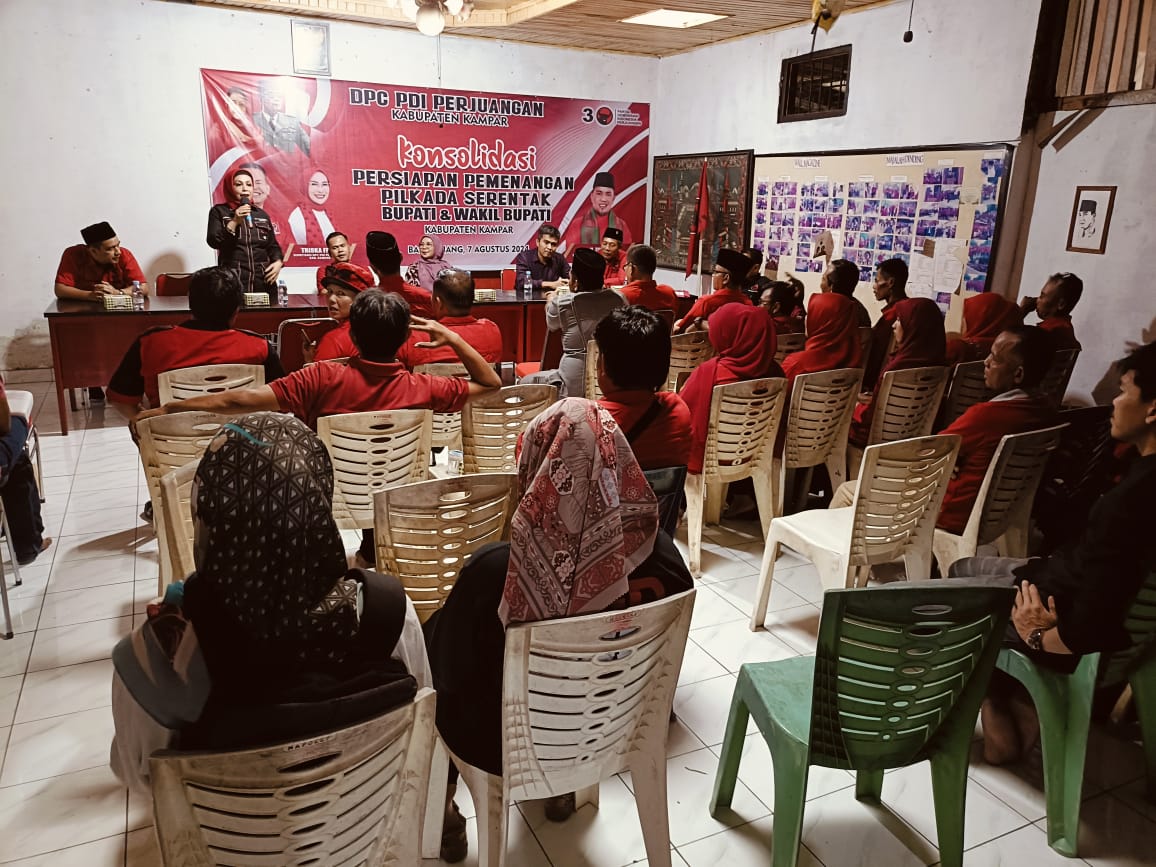 Ketua DPC PDI Perjuangan Kabupaten Kampar, Hanafiah saat Konsolidasi persiapan pemanangan Pilkada serentak bupati dan wakil bupati Kampar DPC PDI Perjuangan Kabupaten Kampar, (07/08/2024) di kantor DPC PDI Perjuangan Kabupaten Kampar di Bangkinang Kota mengatakan, bahwa kegiatan konsolidasi merupakan tindak lanjut dari surat tugas yang diberikan oleh DPP PDI Perjuangan kepada Misharti. Dari dua orang yang mendapatkan amanah dari DPP PDI Perjuangan untuk maju sebagai wakil bupati Kampar, Misharti adalah kandidat yang berhasil mendapatkan pasangan koasalisinya untuk melaju pada Pilkada Kabupaten Kampar.