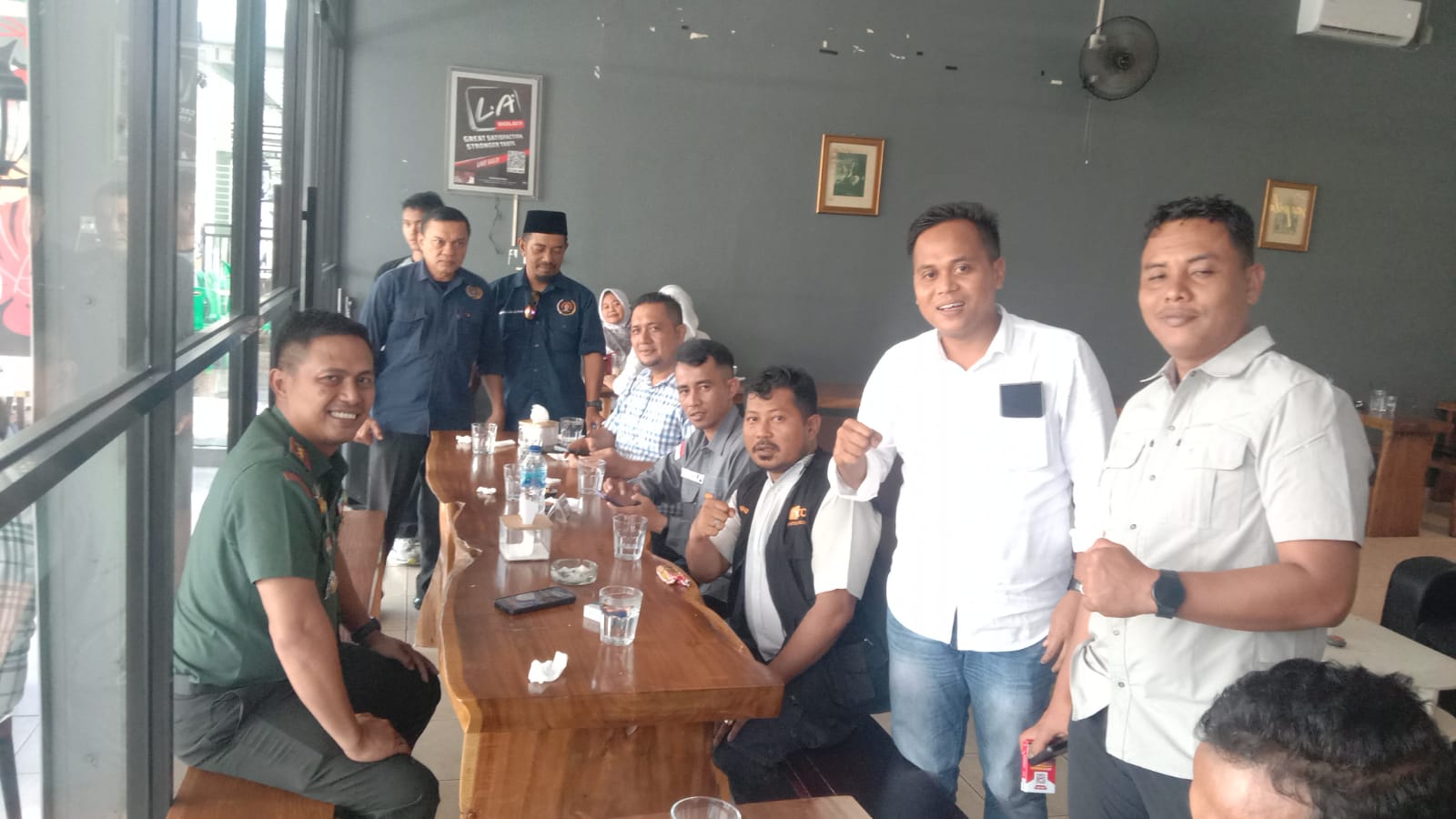 Dandim 0313/KPR Letkol Inf Setiawan Hadi didampingi perwira dan staf di jajaran Kodim 0313/KPR menyambut pengurus dan anggota PWI Kabupaten Kampar, Kamis (12/06/2025) siang, bertempat di Tiga Pilar Cafe, Jalan Jenderal Sudirman, Kelurahan Langgini, Kecamatan Bangkinang Kota, Kabupaten Kampar.