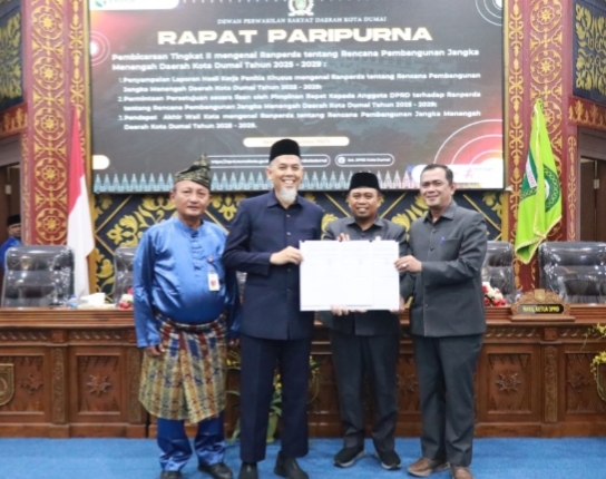 “Dengan kerja keras dan sinergi yang luar biasa dari seluruh anggota DPRD terkhususnya pansus ranperda, saya mengucapkan terimakasih dan memberi apresiasi yang sangat luar biasa. Dengan dirumuskannya dokumen pembangunan ini menjadi suatu komitmen kita bersama untuk membangun Kota Dumai ke tingkat yang lebih baik lain,” ucapnya.