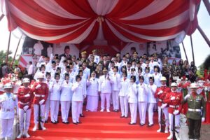 Usai upacara Kasmarni mengucapkan selamat Hari Ulang Tahun ke-80 Kemerdekaan Republik Indonesia.