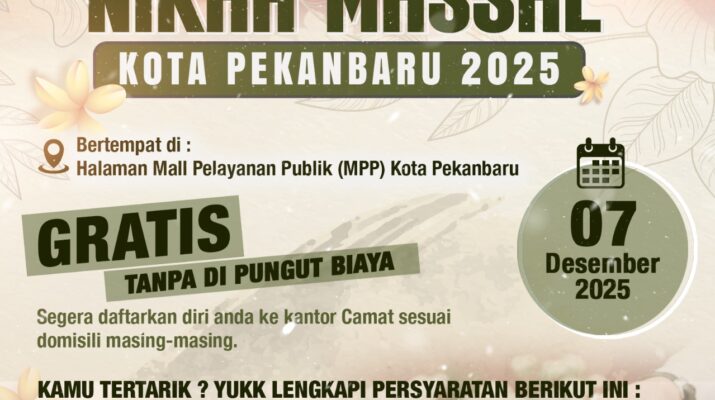 Mataaura.com-PEKANBARU – Program Nikah Massal Gratis Pemerintah Kota (Pemko) Pekanbaru, per tanggal 2 November 2025 sudah didaftar sebanyak 43 calon pasangan suami istri (pasutri).
