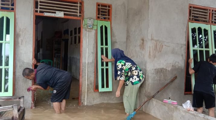 Banjir Mulai Surut, Satu Keluarga Desa Pulau Sengkilo Sibuk Membersihkan Rumah