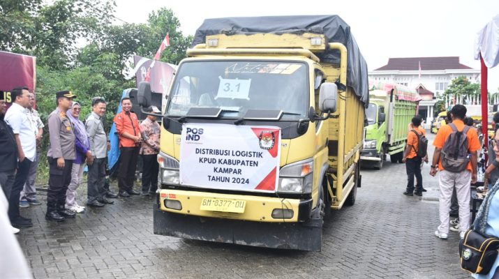 BANGKINANG KOTA, MataAura.com – Penjabat Bupati Kampar H Hambali melepas secara langsung pendistribusian logistik Pemilu tahun 2024, di Halaman Kantor Komisi Pemilihan Umum (KPU)