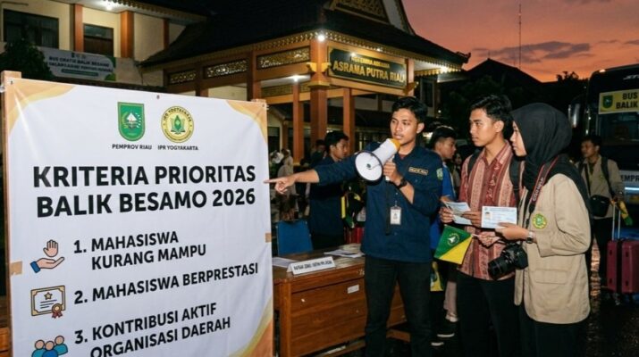 MATAAURA.COM-PEKANBARU–Ikatan Pelajar Riau (IPR) Yogyakarta menetapkan sejumlah kriteria dalam proses seleksi peserta program Balek Besamo 2026 yang difasilitasi oleh Pemerintah Provinsi Riau. Langkah ini