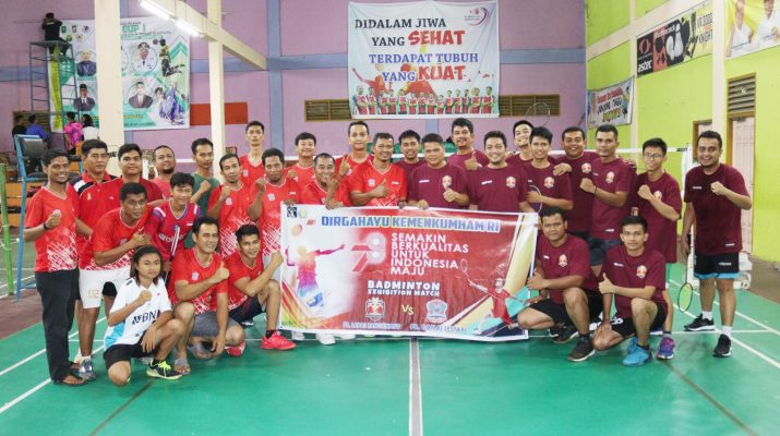 Meriahkan HDKD, Lapas Bangkinang Gelar Pertandingan Eksebisi Bulu Tangkis
