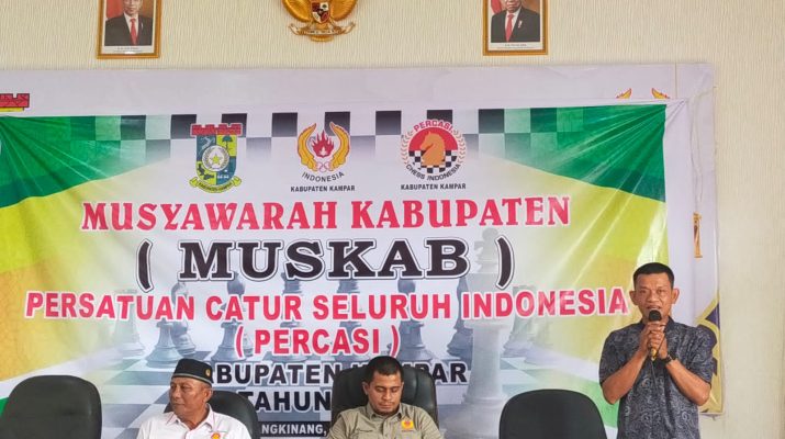Mataaura.com-BANGKINANG KOTA – Persatuan Catur Seluruh Indonesia (PERCASI) Kabupaten Kampar mengelar Musyawarah Kabupaten (MUSKAB) di Aula Koni Kabupaten Kampar, Senin 29 Mei 2023. Zainul