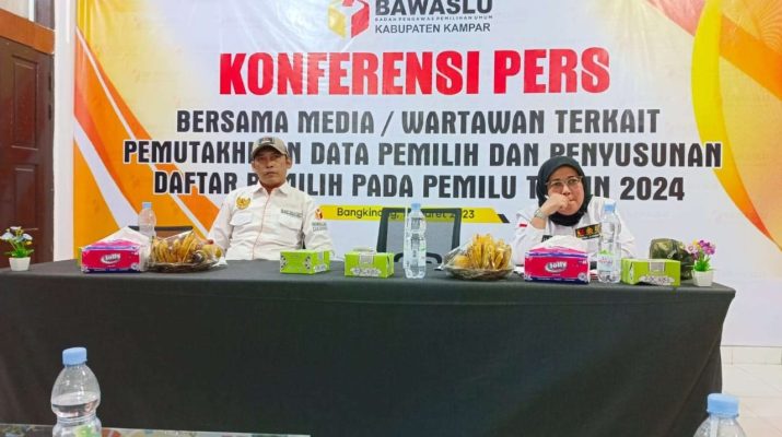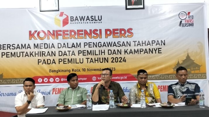 Mataaura.com-BANGKINANG KOTA – Badan pengawas pemilihan umum (Bawaslu) Kabupaten Kampar menggelar Konferensi Pers bersama media dalam pengawasan tahapan pemuktahiran data pemilih dan kampanye pada