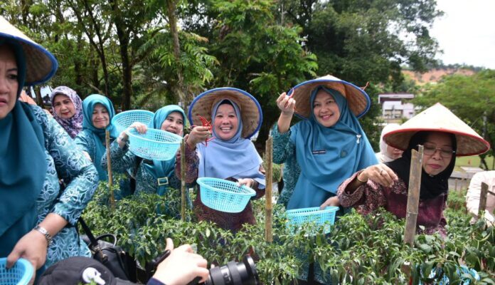 Kadis Pertanian Bersama Ketua TP-PKK Kampar Dampingi Ketua TP-PKK Riau Tinjau Program Gerakan Tanam Cabai