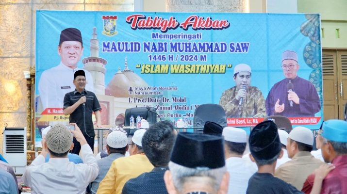 Mataaura.com-BANGKINANG KOTA – Pj. Bupati Kampar Hambali, SE, MH beserta Pj. Ketua TP PKK Kabupaten Kampar Ricana Djayanti Hambali menghadiri Tabligh Akbar dalam