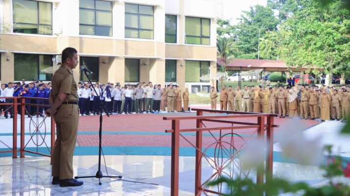 Mataaura.com-BANGKINANG KOTA — Bupati Kampar, Ahmad Yuzar S,Sos MT, memimpin langsung Apel Gabungan di lingkungan Pemerintah Daerah Kabupaten Kampar yang dilaksanakan di Halaman Kantor