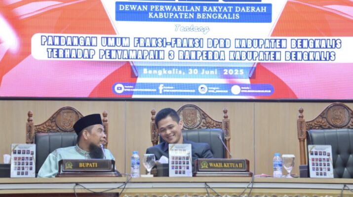Mataaura.com-BENGKALIS –Asisten Bupati Bidang Pemerintahan dan Kesejahteraan Rakyat, Andris Wasono ikuti rapat paripurna Dewan Perwakilan Rakyat Daerah (DPRD) Kabupaten Bengkalis pemyampaian pembahasan Rancangan Peraturan