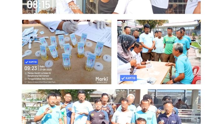 Mataaura.com-BANGKINANG KOTA – Dalam rangka memperkuat komitmen pemberantasan narkoba di lingkungan pemasyarakatan, Lapas Kelas IIA Bangkinang menggelar razia kamar hunian sekaligus tes urine kepada